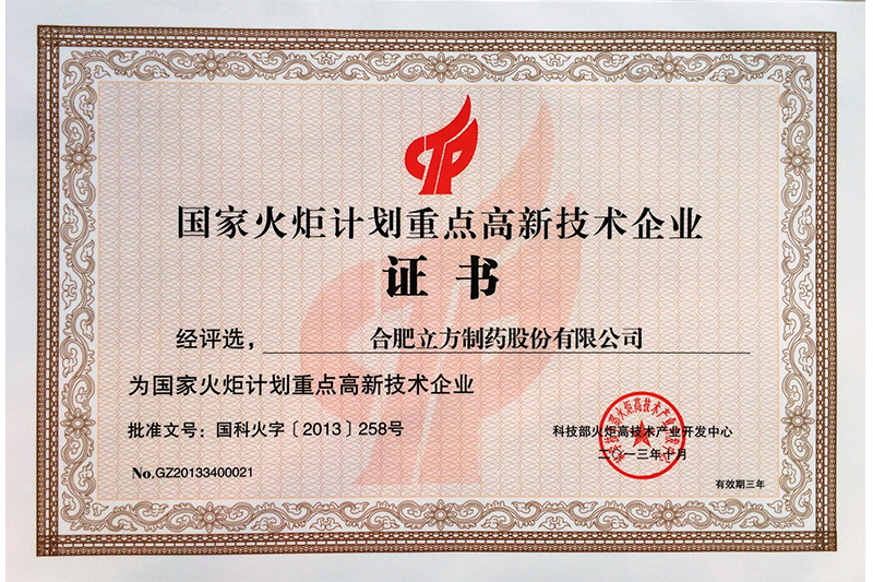 米兰milan(中国) 国家火炬计划重点高新技术企业证...
